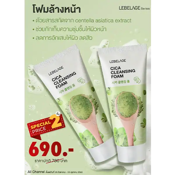 พิเศษ LEBELAGE CICA CLEANSING FOAM ระหว่างวันที่ 28 สิงหาคม – 31 ตุลาคม 2568 นี้เท่านั้น