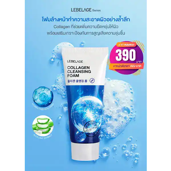 LEBELAGE COLLAGEN CLEANSING FOAM ช่วยกักเก็บความชุ่มชื้นให้ผิวหน้า ทั้งยังลดการอักเสบให้ผิว ลดสิว