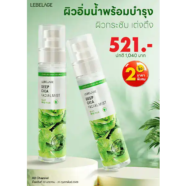 พิเศษ LEBELAGE DEEPCICA FACIAL MIST 300ml. ระหว่างวันที่ 22 มกราคม – 25 กุมภาพันธ์ 2669 นี้เท่านั้น